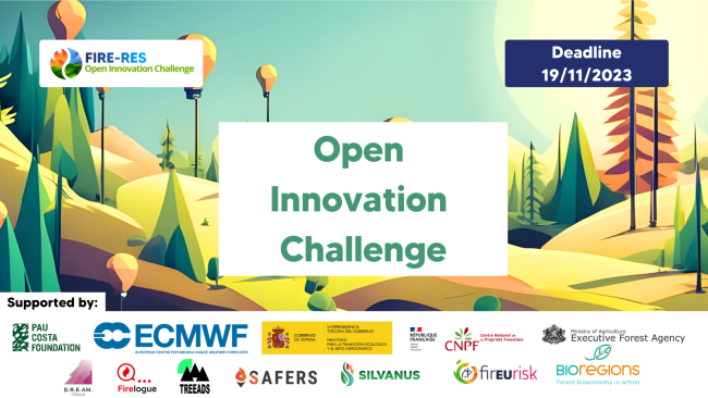 PROCURA DE SOLUÇÕES INOVADORAS PARA INCÊNDIOS FLORESTAIS EXTREMOS. Candidaturas abertas até 19 de novembro. O FIRE-RES Open Innovation Challenge é um concurso internacional que procura soluções inovadoras de gestão do risco de incêndio florestal, abrangendo temas como Comunicação e sensibilização para o risco, Formação e educação, Monitorização, entre outros. Para mais informação, consulte a página oficial